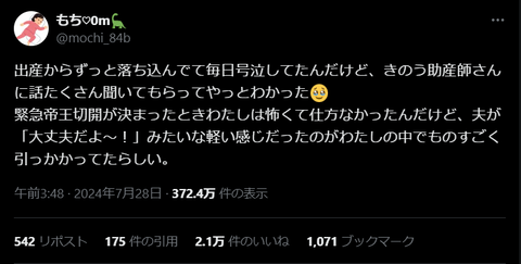 緊急帝王切開が決まった時に夫が軽い感じで「大丈夫だよ~」みたいに言ってきて引っかかる