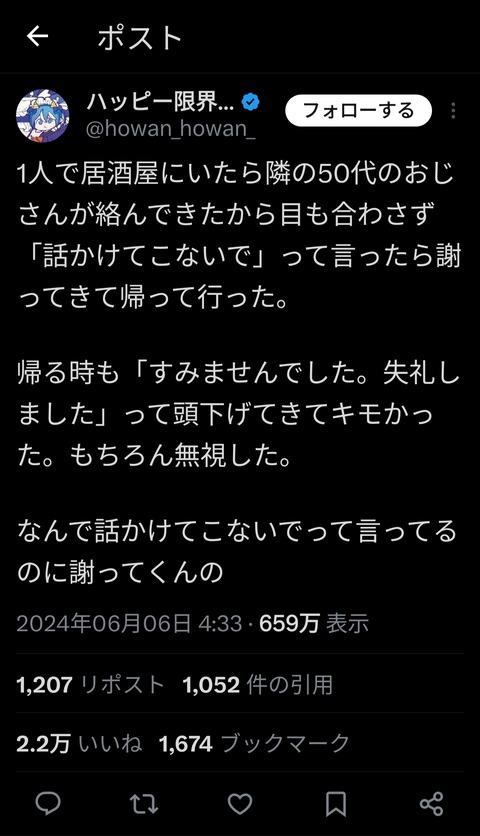 1人で居酒屋にいたらおじさんが絡んできた。女は1人で気楽にご飯にも行けないのか