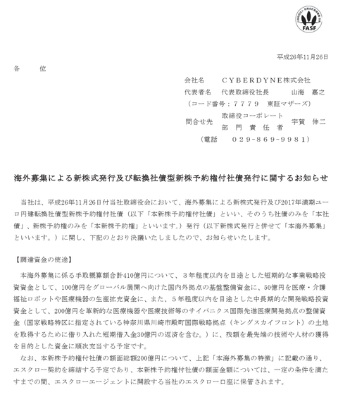 売上4億円だけど410億円おかわりファイナンス、CYBERDYNEがサイボーグ型ロボットより一足早くノーリスク型株券印刷ロボットの開発に成功