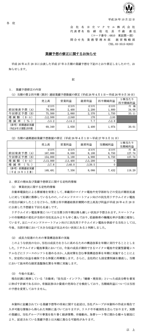再上場から延々と株価の電池が液漏れしてた日立マクセルが7ヶ月目に下方修正と事業構造改革を発表して中の方まで腐食