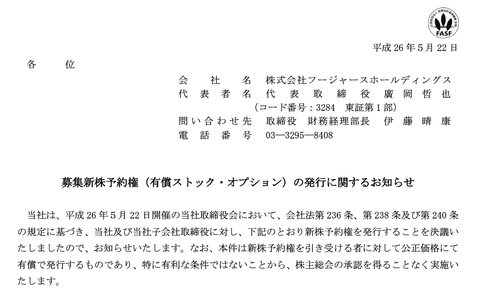 フージャースHDが発行を決めた有償ストックオプションが経営陣のやりたい放題になってると話題に