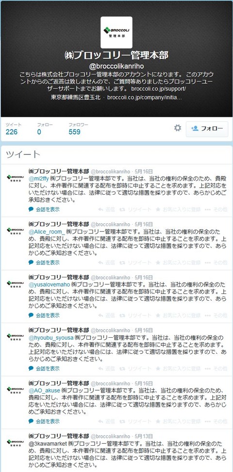 同人グッズ販売に警告出してるブロッコリーが株主総会で「同人誌は宣伝という位置付けから容認」と回答
