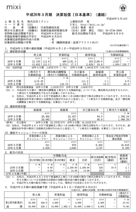 モンスト当てた反動でmixiの会社予想が強気になり過ぎて逆に引くと評判