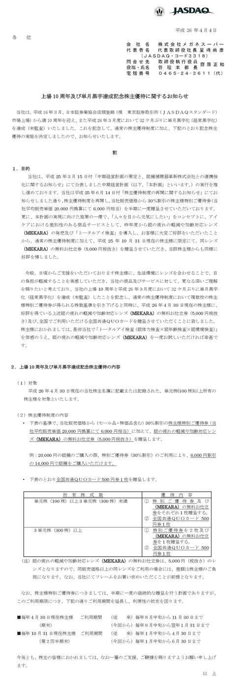 お金がなくて上場廃止寸前のメガネスーパーが唐突に500円クオカードの株主優待を発表して笑いを誘う