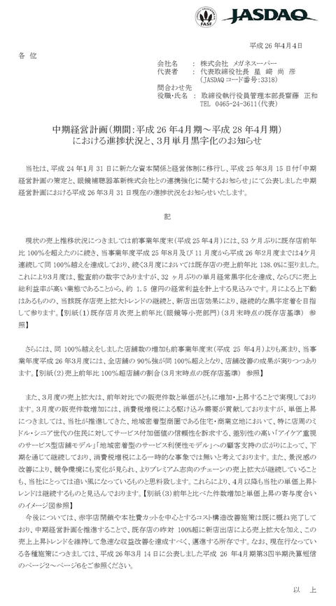 4月末迄に債務超過を解消しないと上場廃止になるメガネスーパー「32ヶ月ぶりに3月単月が黒字となりました」