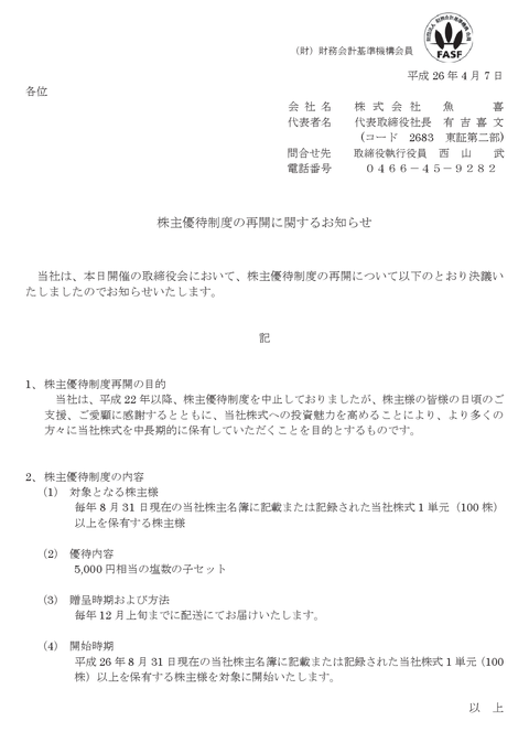 上場維持のために5千円相当「塩数の子」株主優待を出してきた魚喜が株価2万4千円相当上げる