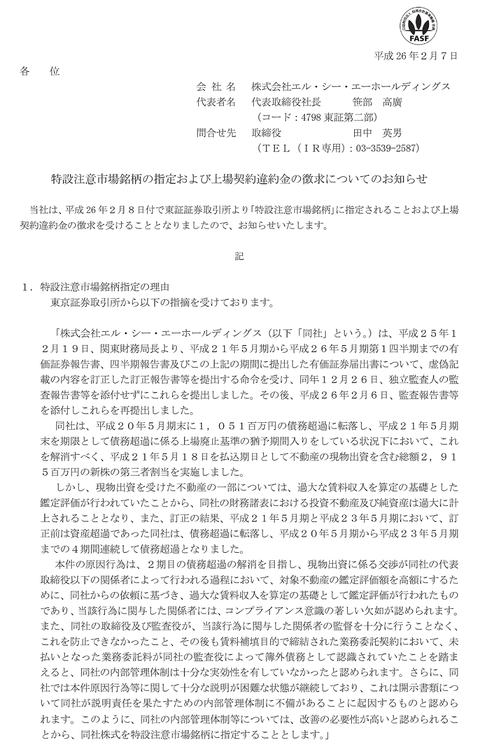 おもしろIRが止まらないエル・シー・エーHD「元顧問弁護士から未払状態が続く顧問料の支払いの件で訴えられました」