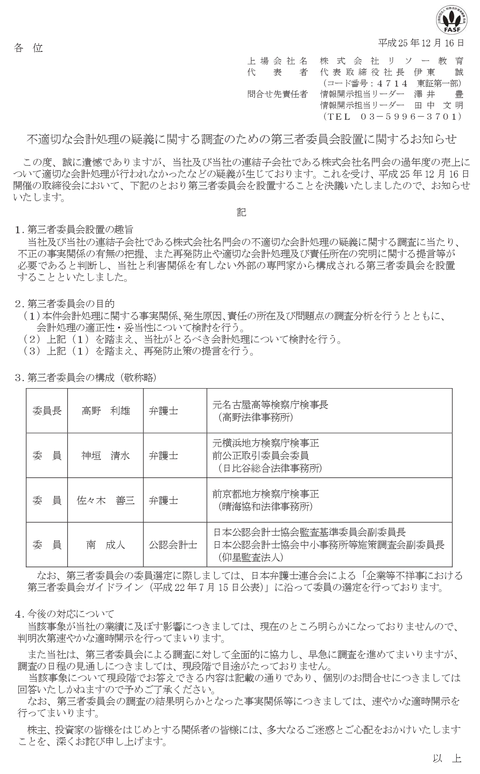 リソー教育がギソー教育してるとの報道にストップ安まで沈んで投資家いい勉強させられる