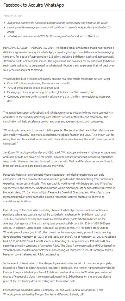 FacebookのWhatsApp1.9兆円買収に衝撃走る