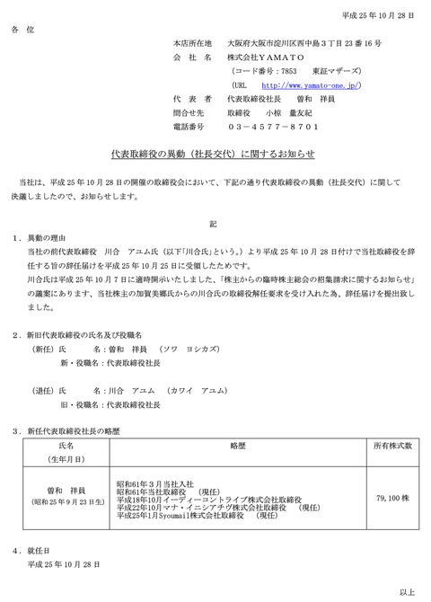 社長がクルクル変わり始めたYAMATO「思い違いで監査役の任期が切れてました」