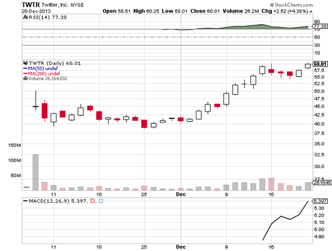 初値45.10ドルのTwitterの株価が60ドルの大台を突破