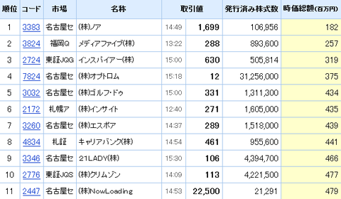 2013年IPO企業、上場ゴールの軌跡 (8-11月)